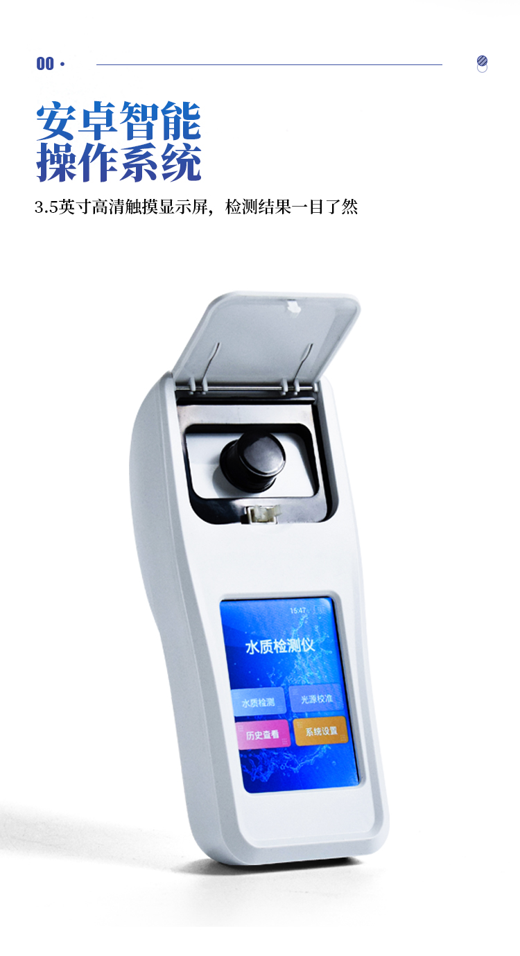 IN-C01型,水质检测仪器配合快速显色检测试剂,可“快速、简单、准确、稳定”进行测量,拥有精美的外观造型,简单的操作界面,准确的检测系统,帮助用户获得精细的数据,可更准确、有效的分析水体状况,提前预防,及时避免损失。