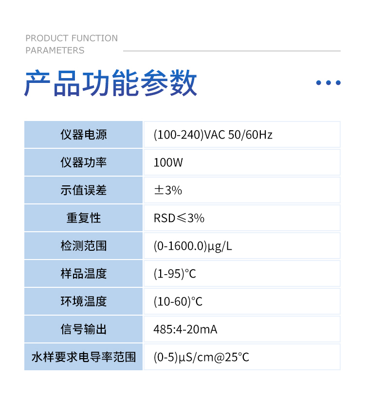 水样要求电导率范围:(0-5)μS/cm@25℃