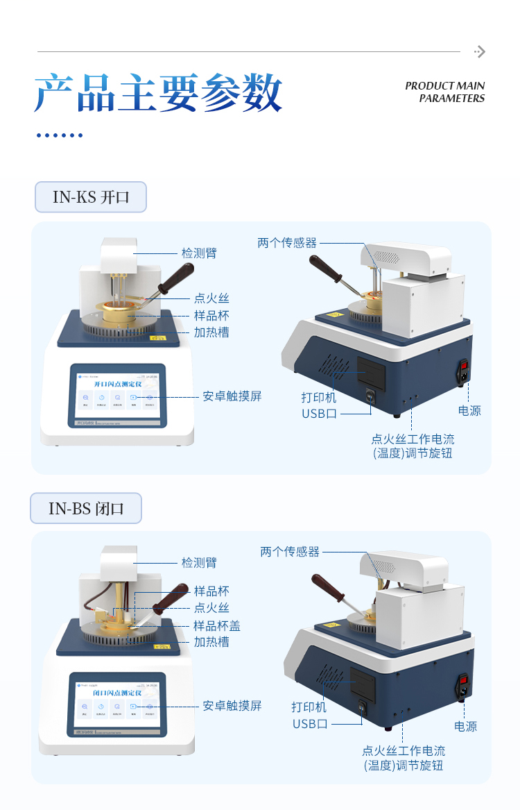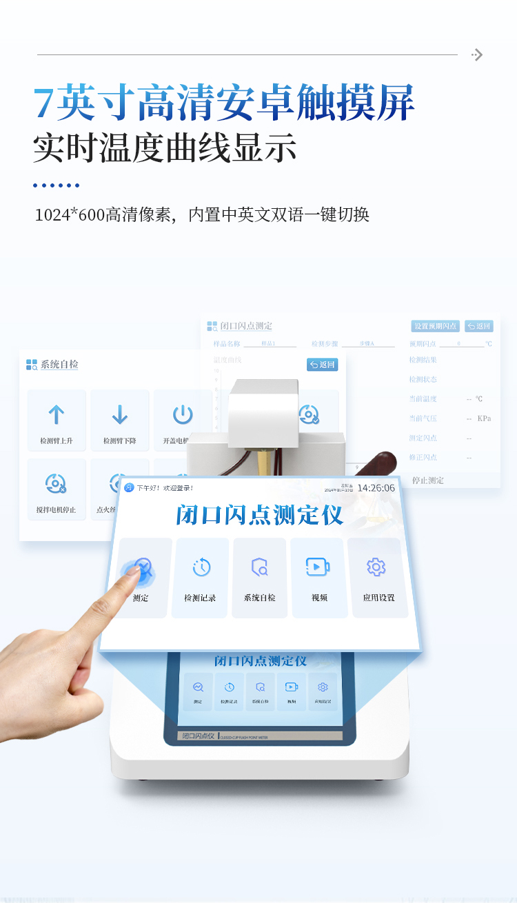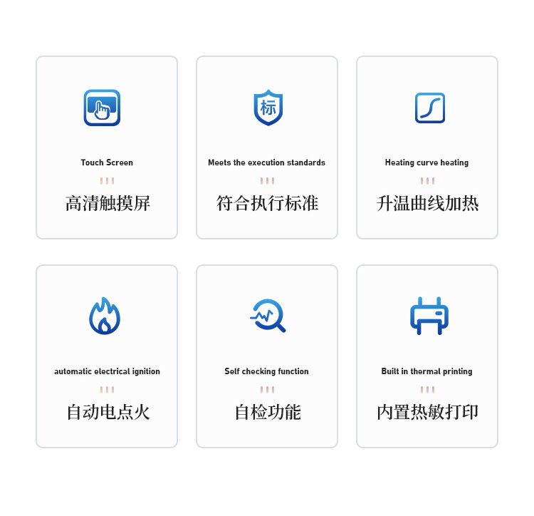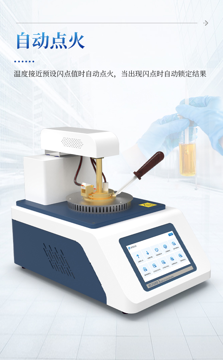 仪器按照GB/T 261-2021方法规定的升温曲线加热,温度接近预期闪点值时自动点火,当出现闪点时仪器自动锁定结果,并显示和打印,同时启动风机自动对加热器进行冷却。