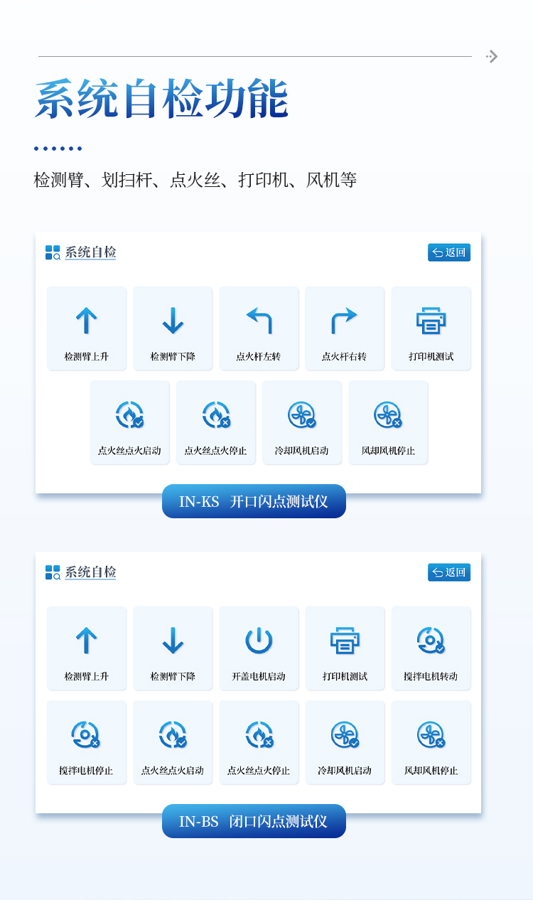 自检功能 检测臂、点火丝、打印机、风机、开关盖等