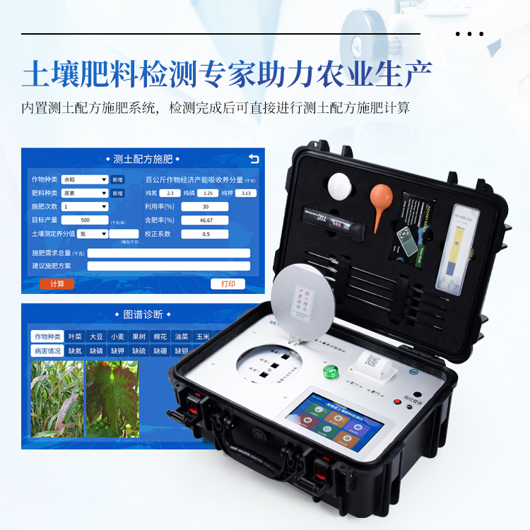 15.内置测土配方施肥系统,检测完成后可直接进行测土配方施肥计算;同时具有单独配方施肥计算模块;仪器内置百余种常见经济作物标准养分值,内置施肥校正系数,可对目标产量计算施肥量,以此指导农业生产;测土配方施肥结果可打印,打印内容包含作物种类、肥料种类、目标产量、需求总量、建议施肥方案。