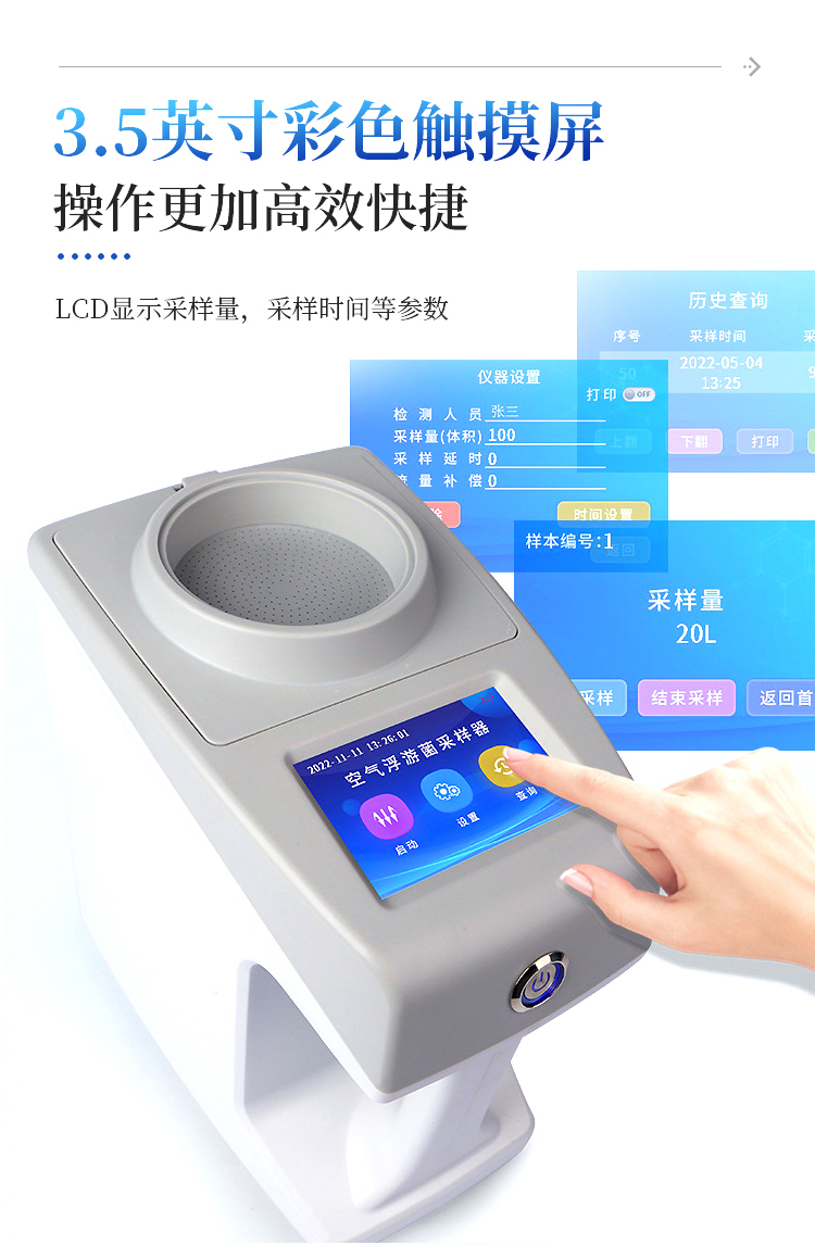 采样时,带尘菌空气高速通过微孔,被撞击在培养皿内的琼脂表面;采集完成后把琼脂培养皿盖好,这些活体微生物在培养过程中,发生动能再水化过程,高速生长,从而更快得出结果。
