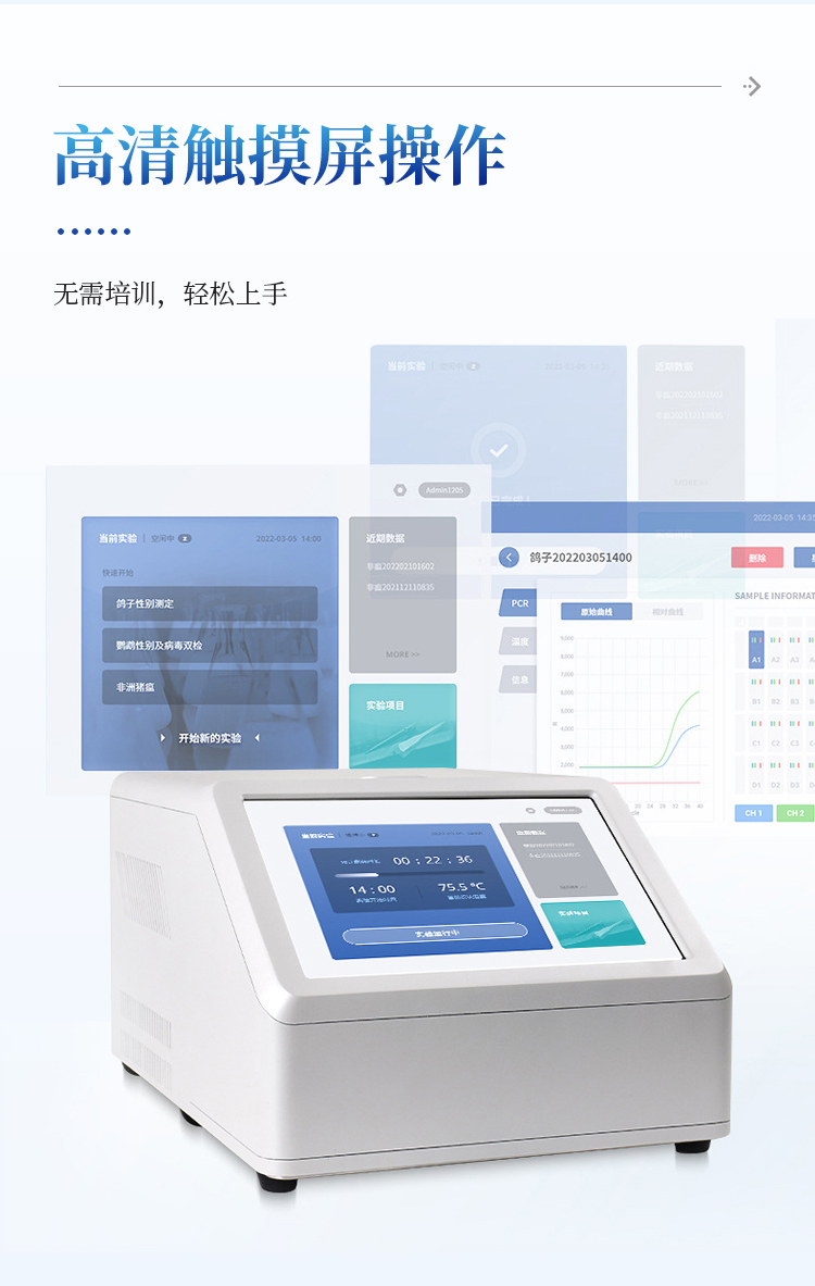鸽子性别检测仪是实时检测反应的仪器,主要由基因扩增热循环系统、荧光实时检测系统、微电路控制系统、计算机及应用软件组成。其中两个核心功能模块:热循环系统和荧光实时检测系统。其中基因扩增热循环系统工作原理与传统基因扩增仪工作原理基本相同,采用半导体加热制冷工作方式完成热循环过程。荧光检测系统主要有由荧光激发部件、光信号传输部件、荧光检测部件、控制系统组成。