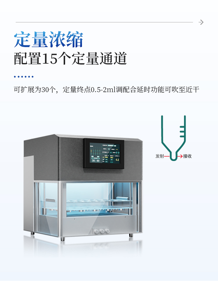 15.▲浓缩方法可保存可调用,可将水浴温度、喷针自动下降、氮气阶梯控压设置等数据保存为相应样品的浓缩方法,也可直接调用相关浓缩方法