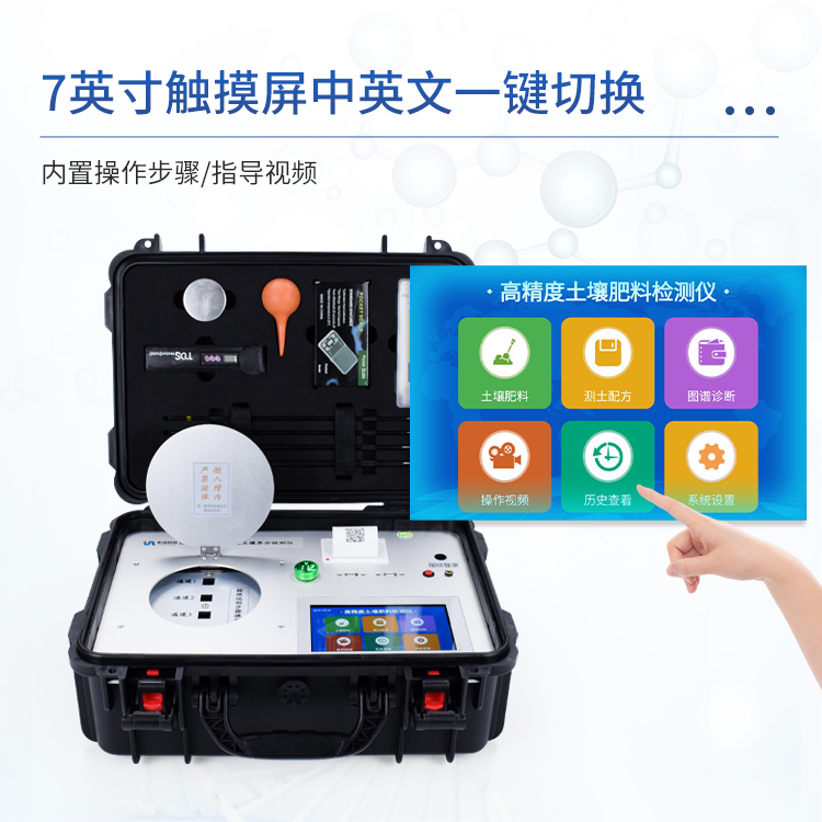 2.7.0寸彩色液晶显示屏(分辨率:1024*600),背光可见便于野外实验操作,仪器外尺寸:470*340*210mm;仪器面板尺寸432*292mm。