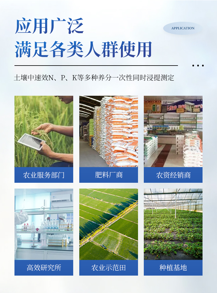 土壤中速效N、P、K等多种养分一次性同时浸提测定。