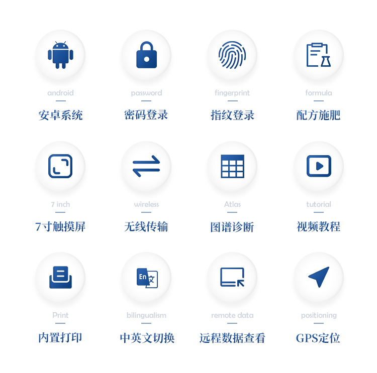 8.数据打印:内置热敏打印机(无需更换色带),可打印出检测项目、检测单位、检测人员、检测时间、通道号、吸光度、养分含量(mg/kg)、以及二维码等信息。