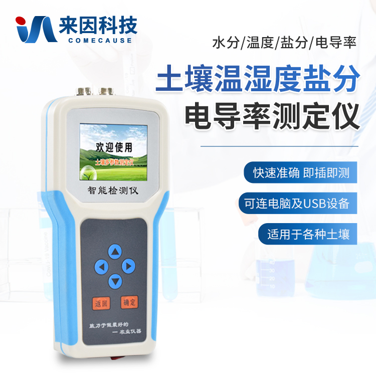 2、同时显示土壤电导率和盐分数值,免去用户手动计算,读数直观。