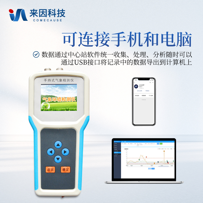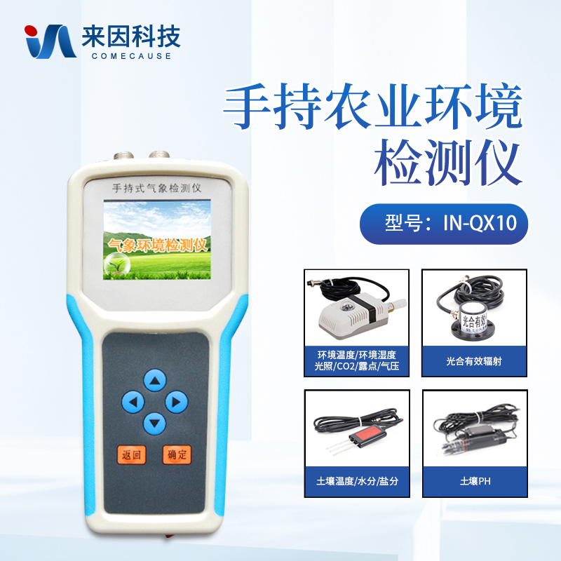 手持式智能农业气象环境检测仪是猫咪在线视频专门针对农田、草场局部小尺度环境设计的,对与植被和农作物生长密切相关的土壤、水气等环境参数监测的农田小气候站。它主要观测与农业相关的空气温度、空气湿度、光照强度、二氧化碳浓度、露点温度、光合有效辐射、土壤温度、土壤湿度、土壤盐分、土壤PH等10个环境参数气象要素,为农业科研、农业生产等提供良好的支持。