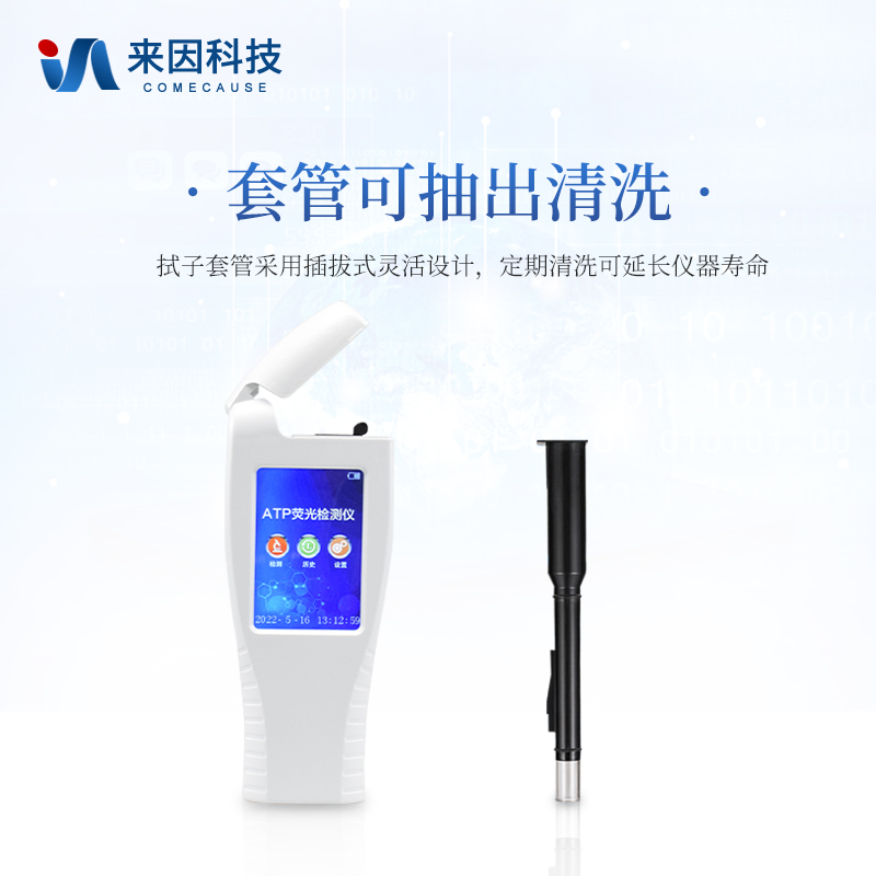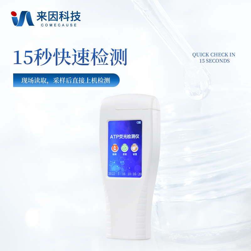 该设备为全新升级产品,安卓智能操作系统。操作采用生物化学反应方法检测ATP含量,ATP荧光检测仪基于萤火虫发光原理,利用“荧光素酶—荧光素体系”快速检测三磷酸腺苷(ATP)。ATP拭子含有可以裂解细胞膜的试剂,能将细胞内ATP释放出来,与试剂中含有的特异性酶发生反应,产生光,再用荧光照度计检测发光值,微生物的数量与发光值成正比,由于所有生物活细胞中含有恒量的ATP,所以ATP含量可以清晰地表明样品中微生物与其他生物残余的多少,用于判断卫生状况。