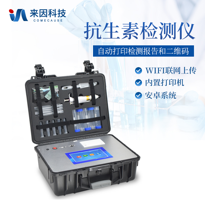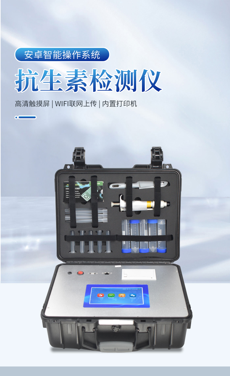 抗生素残留检测仪可现场快速检测多类别抗生素类残留,如可快速检测四环素类、硝基呋喃类、磺胺类、沙星类、喹诺酮类、氯霉素、氟苯尼考、庆大霉素、链霉素、喹乙醇代谢物、硫酸链霉素、羧苄青霉素、噻孢菌素钠、阿莫西林、氨苄西林、红霉素、潮霉素B、安普霉紊、杆菌肽、氨丙琳、苄青霉家、头孢噻呋、克拉维酸、氯羟吡啶、阿散酸等抗生素快速检测;水产兽药:呋喃妥因代谢、呋喃西林代谢、呋喃它酮代谢、呋喃唑酮代谢、地西泮、孔雀石绿等。
