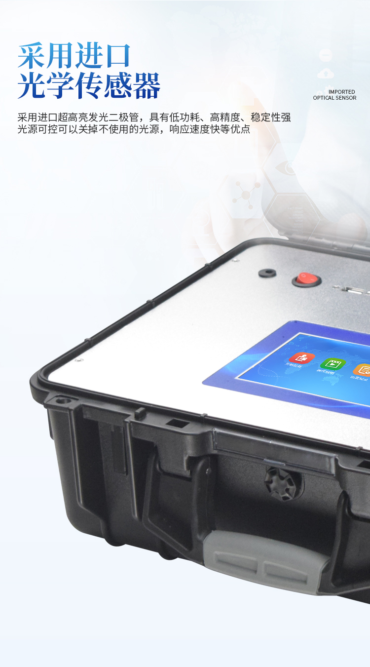 7、一体化便携式快检设备,满足现场及流动检测使用需求,能够在同一软件下实现所有检测项目的检测,并可通过同一窗口直观显示检测结果。