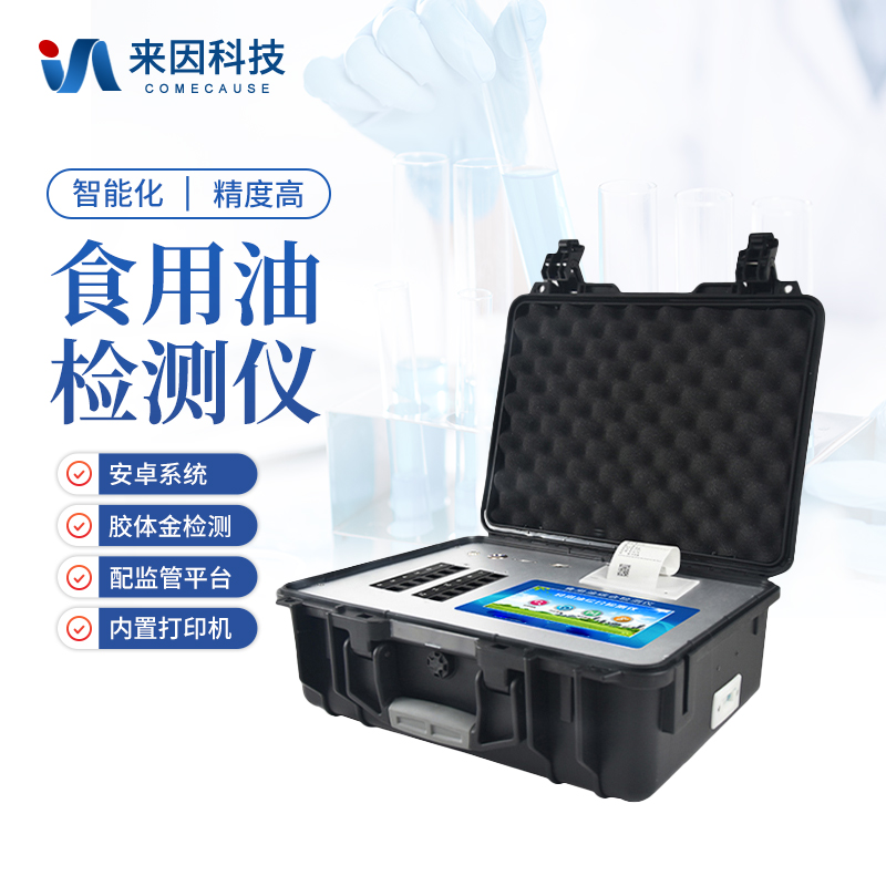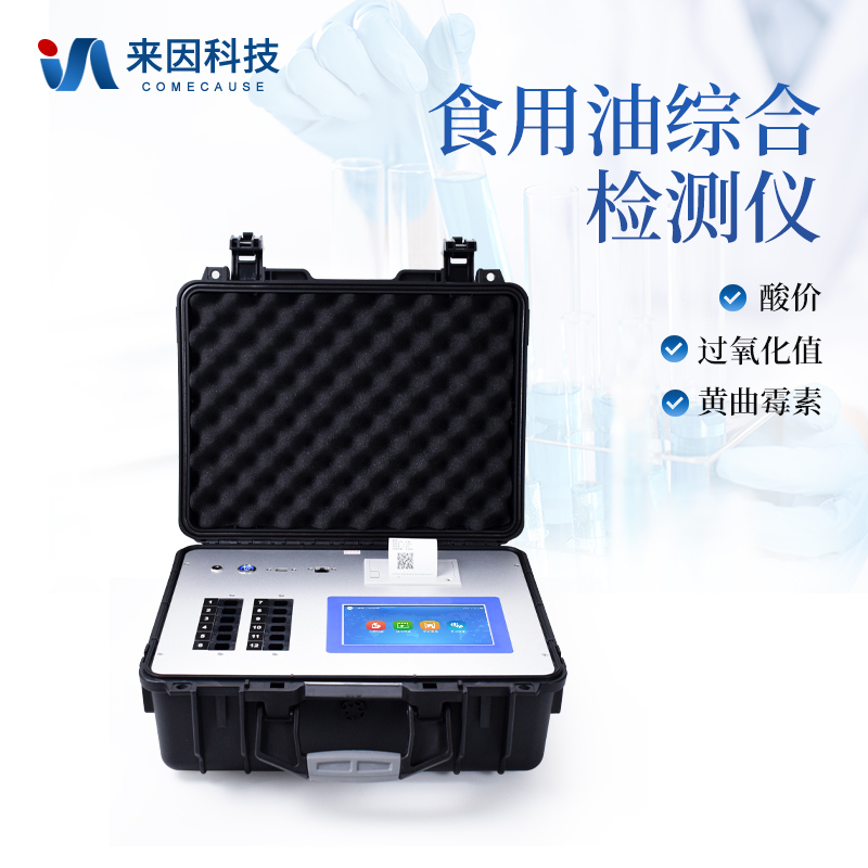 食用油综合检测检测仪为集成化油品快速检测分析设备,能够快速检测食用植物油、食用猪油、花生油、葵花油、米糠油、食品、肉制品中的酸价、过氧化值、黄曲霉毒素等含量;通过检测可确定植物油是否符合国家标准或是否为酸败油、劣质油、地沟油等。仪器预留其他项目检测程序和端口,根据日后需求可方便的自主增加检测项目。日后可升级为检测水产品、面制品的综合类型仪器。