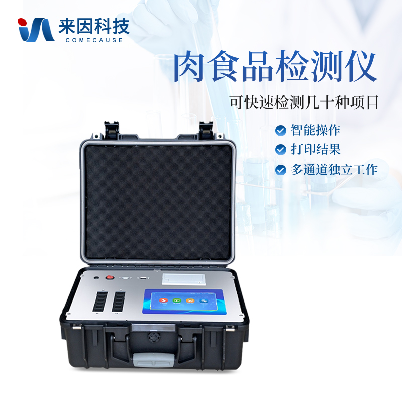 多功能肉制品安全检测仪可快速检测几十种项目,包含各种兽药残留:抗生素类残留、瘦肉精激素类残留;病害肉诊断:肉类新鲜度、肉中组胺、挥发性盐基氮;水产品安全筛查等现场的定性定量检测。