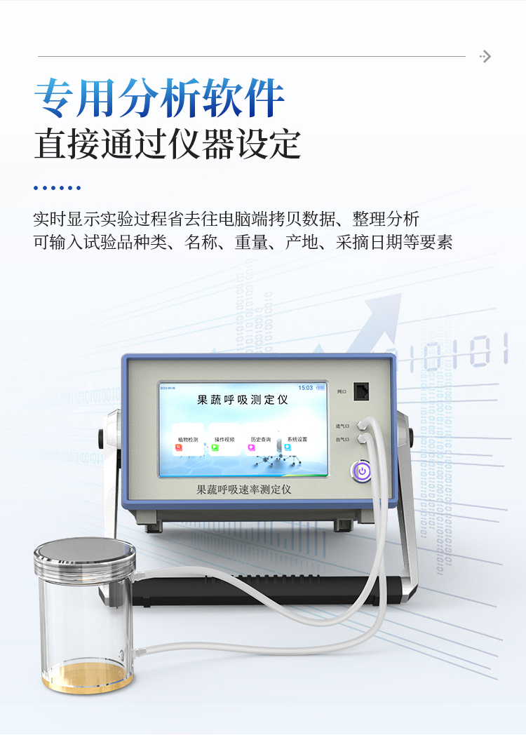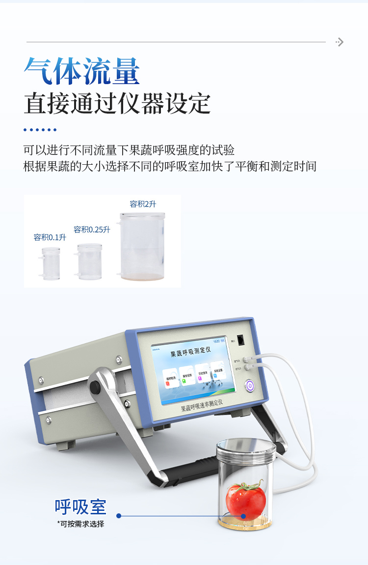 果蔬呼吸仪采用双波长红外二氧化碳分析器,7寸安卓显示器,专门用于常温、冷藏库、气调库、超市冷柜等储藏条件下的果品和蔬菜呼吸强度的测定和分析研究。